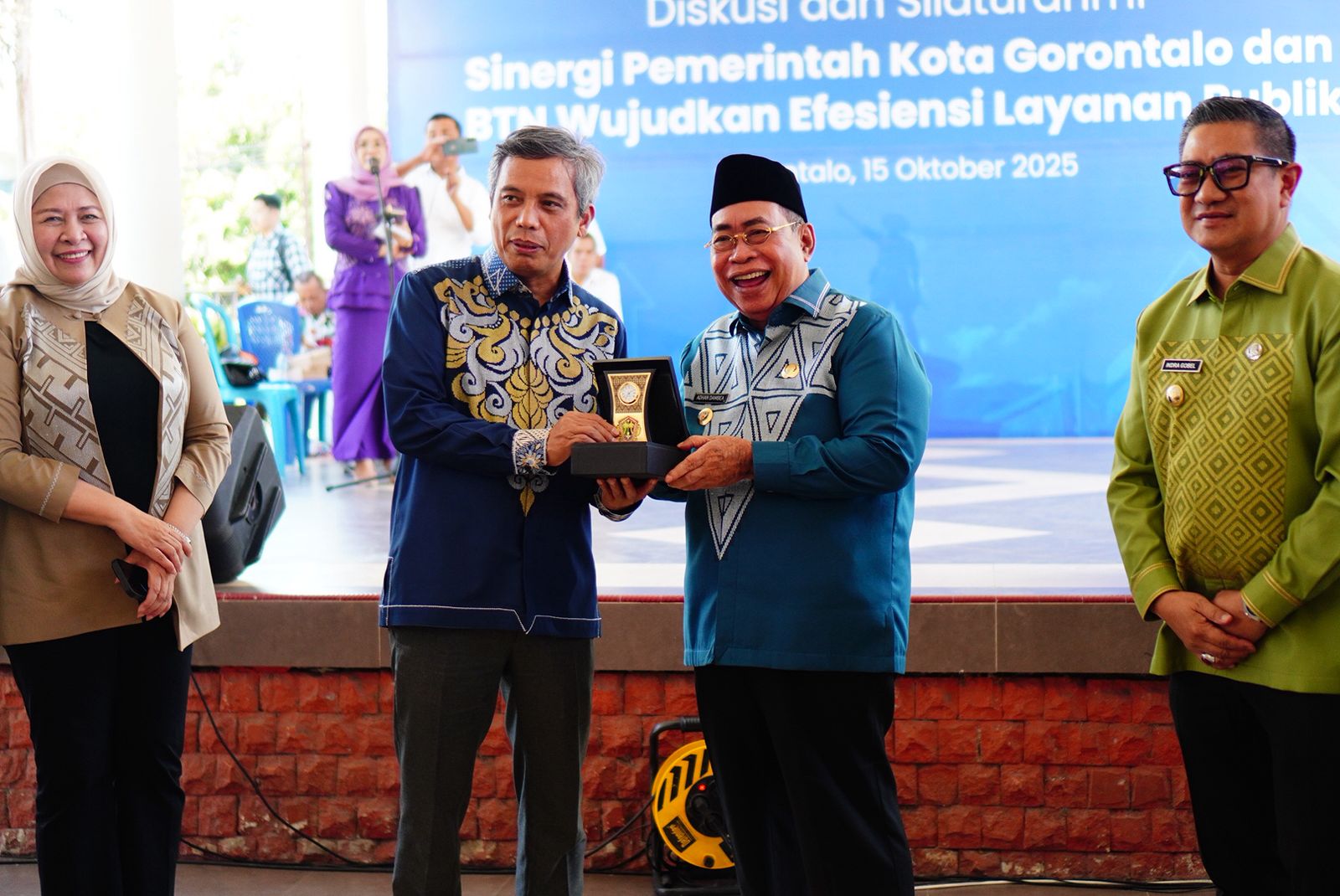 Dalam upaya memperkuat kerja sama lintas sektor, Pemerintah Kota Gorontalo bersama Bank Tabungan Negara (BTN) menggelar kegiatan diskusi dan silaturahmi sinergi Pemerintah Kota Gorontalo dan BTN dengan tema “Mewujudkan Efisiensi Layanan Publik”, Rabu (15/10/2025).